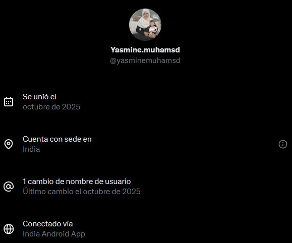 "Yasmine.muhamsd": madre en Gaza llorando con su bebé en brazos... geolocalizada en India. Borró todo tras ser expuesta.