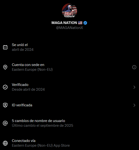 Supuestos patriotas estadounidenses MAGA posteando desde Nigeria o Europa del Este 🌍